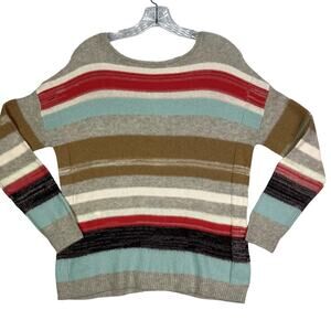 Caslon Sweater Womens Small Petite Striped Color Block Knit Button Back