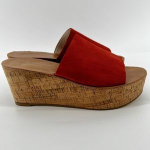 Caslon Terracotta Orange Suede Leather Cork Wedge Slide Sz 9.
