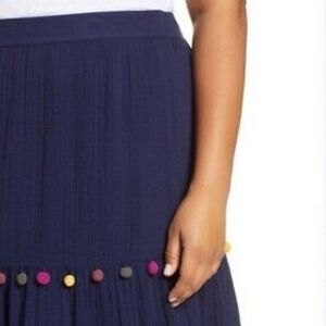 Caslon Tiered PomPom Navy Maxi Boho Prairie Skirt Size Large NWOT