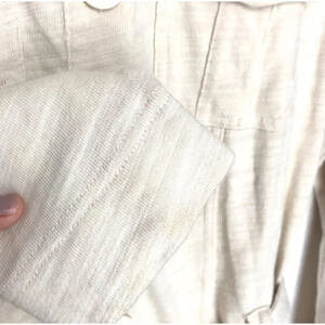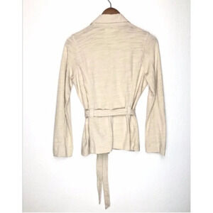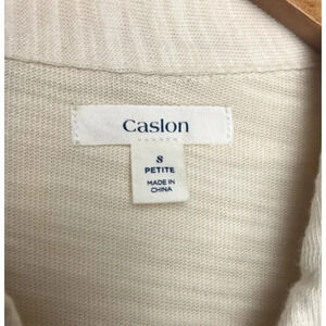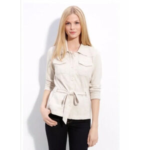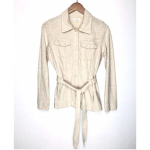 Caslon Blouse Women's Sz S Petite Long Sleeve Button Front Collared Belted Pocket Beige Jacket Styled 100% Cotton