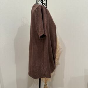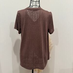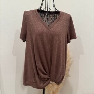 Caslon Twist Hem V-Neck Slub Knit Short Sleeve Top Small Coffee Bean