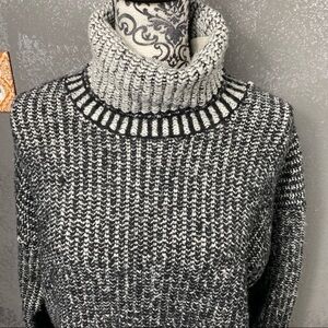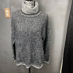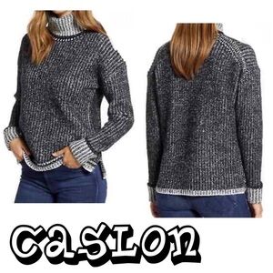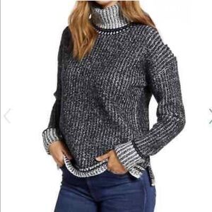 Caslon Two Tone chunky knit Turtleneck Pullover Sweater black/ivory. Warm heavy