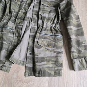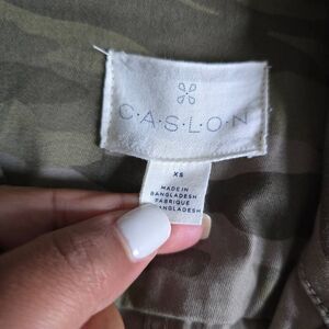 Caslon Utility Jacket Womens XS Green Camouflage Denim Snap Zip Pockets Stretch