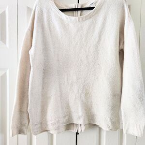 Caslon Women's Cream Crewneck Back Zipper Wool Blend Sweater, Size Medium