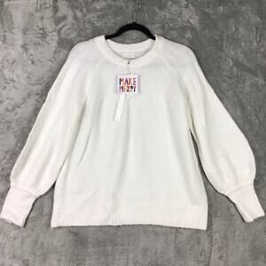 Caslon Women’s Cream Rib Yoke Pullover Sweater Long Sleeve Size Medium NWT