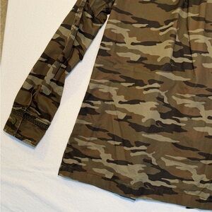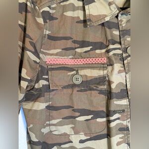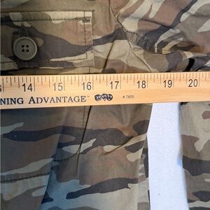 Caslon utility jacket with a classic camouflage pattern. Features button closure and chest pockets. Ideal for casual wear. Measurements and fabrics in pictures. Excellent condition!