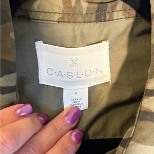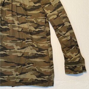 Caslon Women's Embroidered Olive Green Camo button up collared jacket size SM