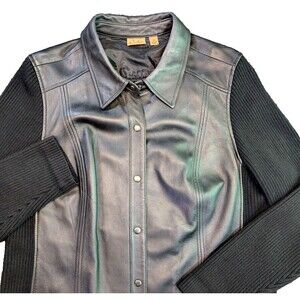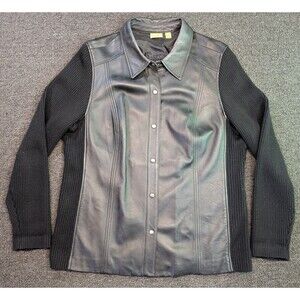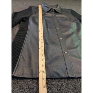 Caslon Womens Genuine Leather Jacket Black Wool Knit Sweater Sleeves 2X Read