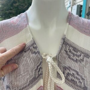 Caslon Womens Kimono Cardigan Open Front Tasseled Short Sleeve Boho One Size