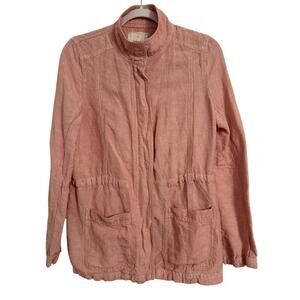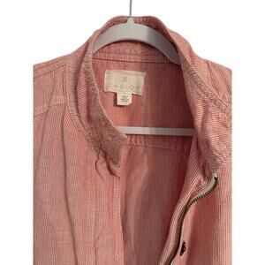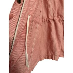 Caslon Women's S Boho Chic Candy Stripe Pink Seersucker Zip Utility Jacket