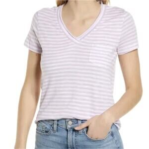 Light purple stripe pocket cotton tee from Caslon in a size small.