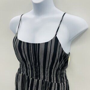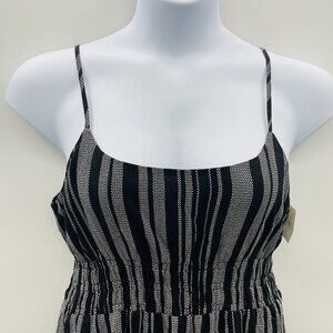 Caslon Womens Size Large Smocked Striped Maxi Dress with Side Slit in Black