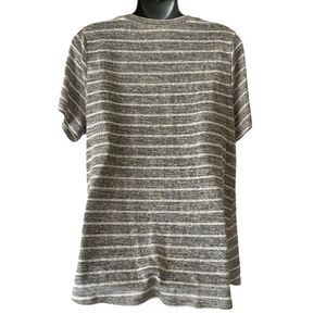 Keywords: Caslon, women's T-shirt, gray, V-neck, short sleeve, striped, casual, spring, relaxed fit, machine washable, pre-owned, polyester, rayon, basic style, XL.