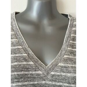 Caslon Women's XL Gray Striped V-Neck Short Sleeve Casual Top