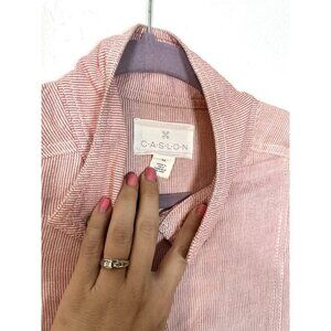 Caslon XS Linen Seersucker Utility Red/White Micro Stripe Jacket