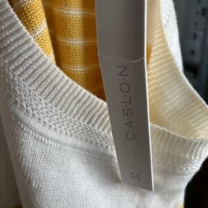 Caslon Yellow White Stripe Sweater Size S Lightweight Long Sleeve New