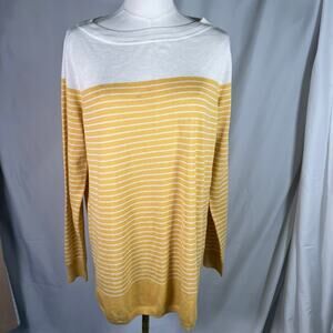 Caslon Yellow White Stripe Tunic Sweater Size S Lightweight Long Sleeve New