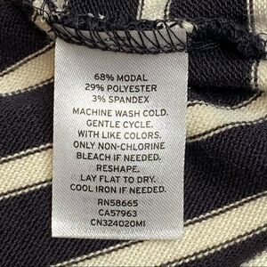 Caslon black and white 3/4 sleeve striped tunic top size L. High low cut with wide slits. Round neck. Super soft and comfortable. Lots of stretch. Loose fit. Style CN324020MI. EauC. 68% modal 29% polyester 3% spandex. Length 32” front 35” back. Chest 23”.