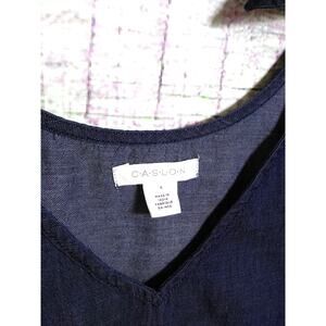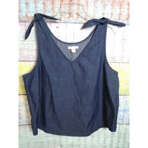 Caslon Chambray top Ties at the shoulders Blue Size large 21" armpit to armpit Good pre owned condition A-06