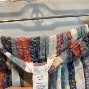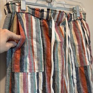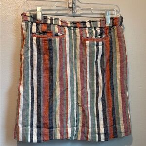 Caslon linen blend petite XS Colorful Striped Skirt with Drawstring and Pockets