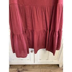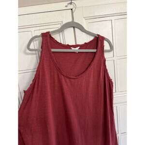 Caslon size 1X dark rust colored maxi dress in nice condition. Measures 22” from pit to pit. 25” across the waist and it is 47” long. Raw hem around the neck and arms. The top is a stretch knot material and the bottom appears to be cotton.
