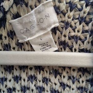 Caslon size L open front cardigan ribbon yarn blue white