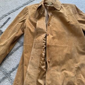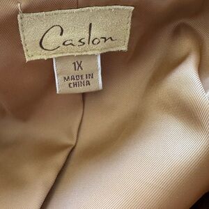 Caslon suede leather blazer jacket tan brown camel color button front 1X