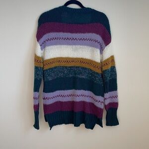Caslon tunic length oversized fuzzy cable knit colorblock sweater