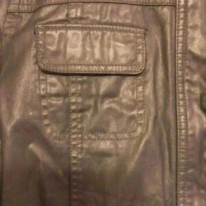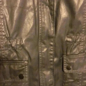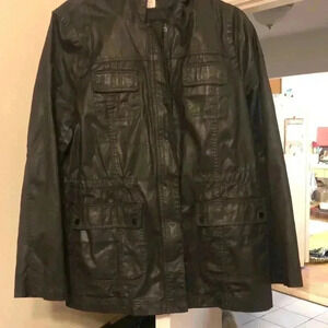 Caslon zippered + snap closure. Tow side pockets with snap close. Additional pockets on top of front. Attached hood. Fully lined. Measurements are 21” from armpit to armpit and 27-1/2” in length.