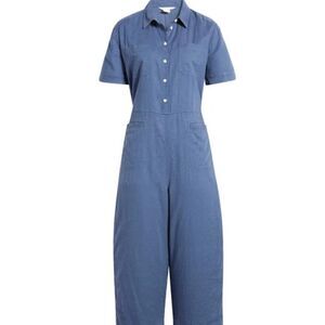 Work the weekend in this easy short-sleeve jumpsuit made from a lightweight linen blend.