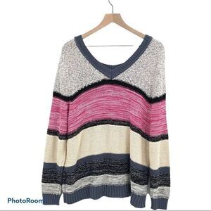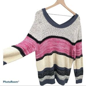 Color: White w Gray, Black, Pink Colorblock Stripes