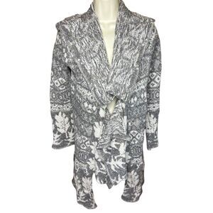 Casmari Cashmere Grey & White Open Front Long Cardigan Size 2 (Medium)