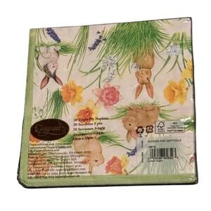 Caspari Easter Bunnies Daffodils Paper Napkins Dinner Gathering Party Sealed