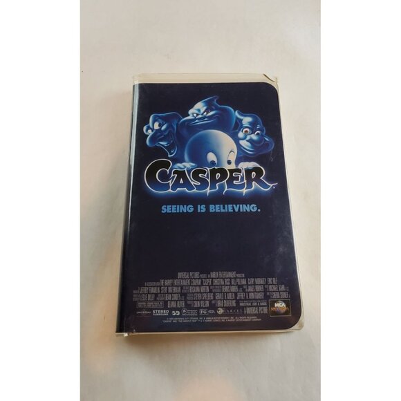 This vintage 1995 Casper: Seeing Is Believing VHS tape in a clamshell case from Universal Pictures will take you back in time. Experience the nostalgia of retro movie nights with this classic film.