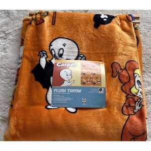 Casper the Friendly Ghost And Wendy Plush Soft Blanket Throw 50x70” Halloween Costumes Orange NEW
