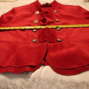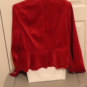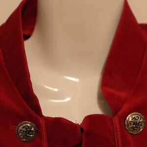 Cass Vibrant Red Velvet Jacket Size Petite Large Hook & Eye Front Closure