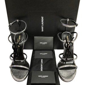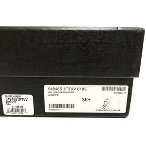 Brand New, authentic Saint Laurent Cassandra 110 YSL Logo Silver Metallic Leather Sandal. EU size 36.5 (US size 6.5B)