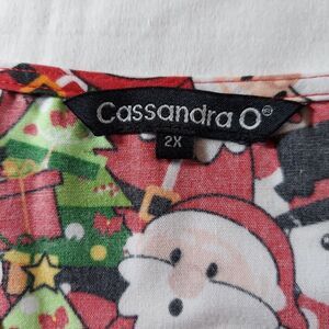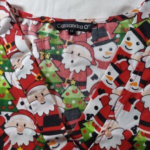 Cassandra O Women’s Christmas Scrub Top Size 2X Santa, Snowman, Tree