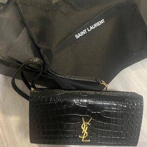 Cassandre Phone Holder with Strap in Shiny Crocodile-Embossed Leather