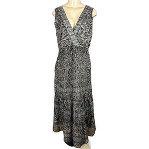 Cassee's M Animal Print Surplice Neck Shirred Lined Ruffle Sleeveless Maxi Dress
