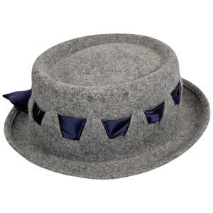 Casselini Gray Wool Felt Navy Blue Ribbon Pork Pie Hat Women’s NWT