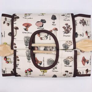Casserole Carrier w Wooden Spoons for 9x13 Pans and 8x8 Square Neutral Mushrooms