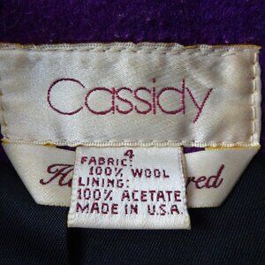 (C2) Cassidy Women Purple Wool Coat Size 4. Preowned. Light stain on front of coat. Also some spots of imperfections on the coat shown in pictures. Please check measurements for the perfect fit.