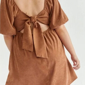Cassie Brown Bow Back Corduroy Mini Dress, Large