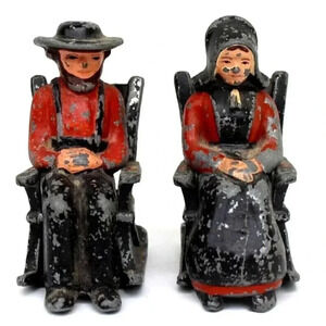 Cast Iron Amish Salt & Pepper Husband & Wife on S & P Rocking Chair Shakers