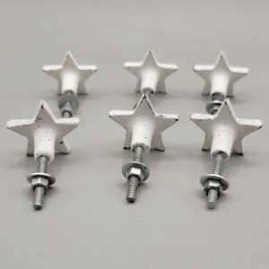 Cast Iron Stars Drawer Knobs Antiqued White Finish Set of 6