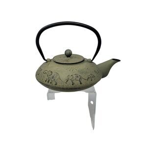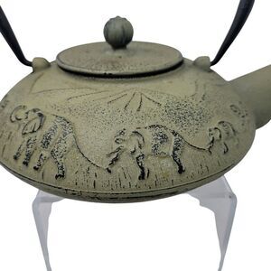 Cast Iron Teapot Sage Green Lucky Elephant Parade Safari 3D Rare Collectible