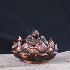 Cast Lotus Tibetan Incense/Candle Holder