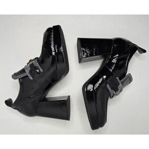 Casta Josh Patent Leather Black Heeled Loafer Gray Silver Buckle size EU 39 90s