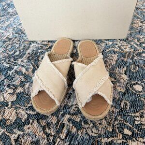 Castañer Palmera Frayed Canvas Espadrille Slides - Size 37 - Lightly Worn